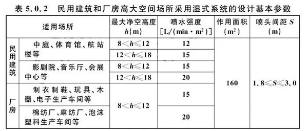 2當(dāng)民用建筑高大空間場所的最大凈空高度為12m<h≤18m時(shí),應(yīng)采用非倉庫型特殊應(yīng)用噴頭。