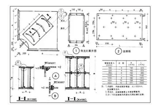 (1)空調(diào)風(fēng)管長邊尺寸大于500mm直角彎頭應(yīng)加導(dǎo)流片。導(dǎo)流片的弧度應(yīng)與彎管角度相一致。風(fēng)管轉(zhuǎn)彎半徑一般R=D。矩形短半徑彎頭應(yīng)加導(dǎo)流葉片,導(dǎo)流葉片厚度為風(fēng)管的兩倍,不小于60mm,片數(shù)不得少于兩片。