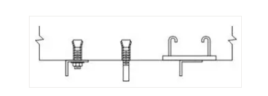 (2)支吊架的固定采用以下幾種方法:①膨脹螺栓法。本方法適用于規(guī)格較小的風(fēng)管支吊架的固定。本工程支吊架固定大多數(shù)采用此法,通過在樓板、梁柱上打膨脹螺栓固定支吊架。②焊接法。本方法適用于風(fēng)管規(guī)格大,使用膨脹螺栓固定不能滿足強(qiáng)度時(shí),采用預(yù)埋件焊接固定支吊架。支架固定形式見下圖。
