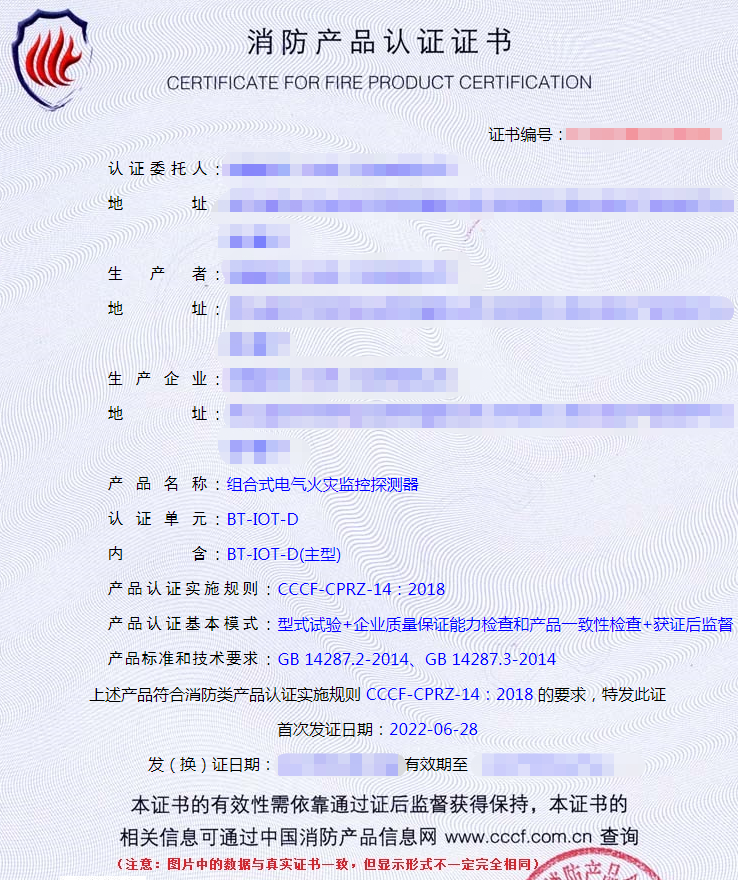 剩余電流式電氣火災(zāi)監(jiān)控探測器產(chǎn)品認(rèn)證檢驗要求
