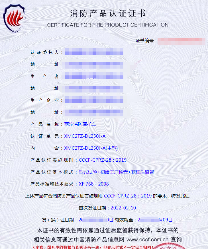 消防摩托車認(rèn)證檢驗(yàn)要求