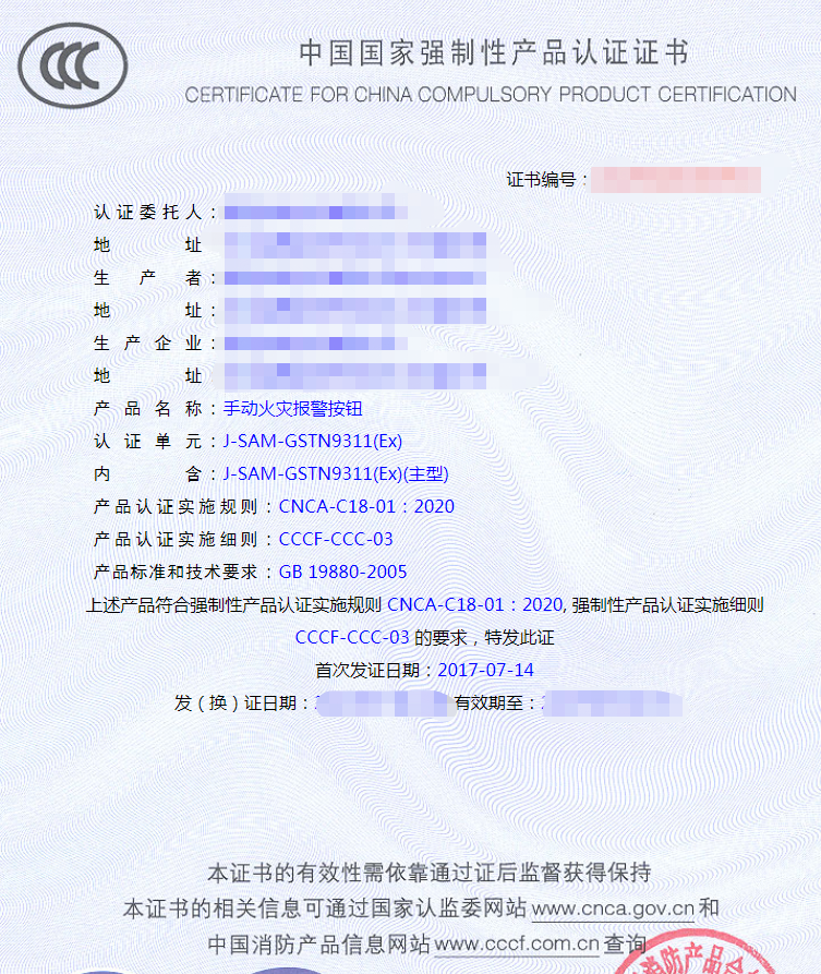 手動(dòng)火災(zāi)報(bào)警按鈕產(chǎn)品認(rèn)證檢驗(yàn)要求